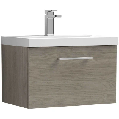 Arno Wall Hung 1 Drawer Vanity Unit with Basin 600mm Wide Solace Oak Woodgrain Nuie