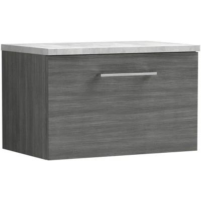 Arno Wall Hung 1 Drawer Vanity Unit with Bellato Grey Worktop 600mm Wide Anthracite Woodgrain Nuie