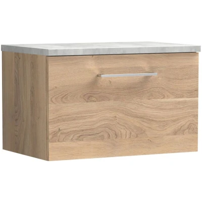 Arno Wall Hung 1 Drawer Vanity Unit with Bellato Grey Worktop 600mm Wide Bleached Oak Nuie