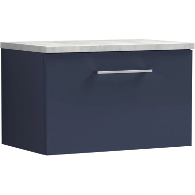Arno Wall Hung 1 Drawer Vanity Unit with Bellato Grey Worktop 600mm Wide Midnight Blue Nuie
