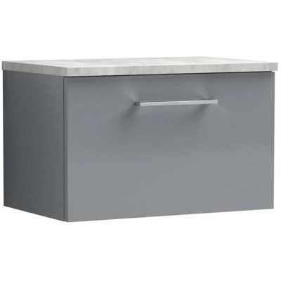 Arno Wall Hung 1 Drawer Vanity Unit with Bellato Grey Worktop 600mm Wide Satin Nuie