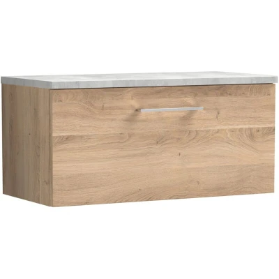 Arno Wall Hung 1 Drawer Vanity Unit with Bellato Grey Worktop 800mm Wide Bleached Oak Nuie