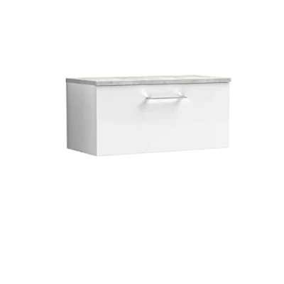 Arno Wall Hung 1 Drawer Vanity Unit with Bellato Grey Worktop 800mm Wide Gloss White Nuie