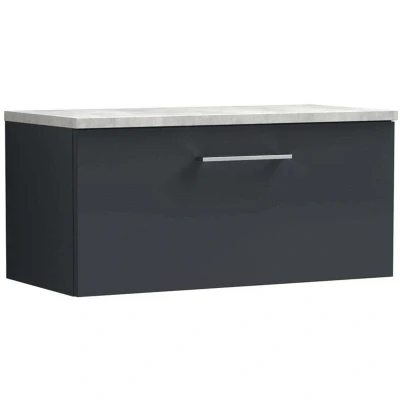 Arno Wall Hung 1 Drawer Vanity Unit with Bellato Grey Worktop 800mm Wide Satin Anthracite Nuie