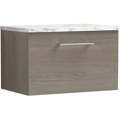 Arno Wall Hung 1 Drawer Vanity Unit with Carrera Marble Worktop 600mm Wide Solace oak Nuie