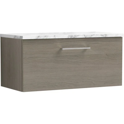 Arno Wall Hung 1 Drawer Vanity Unit with Carrera Marble Worktop 800mm Wide Solace oak Nuie