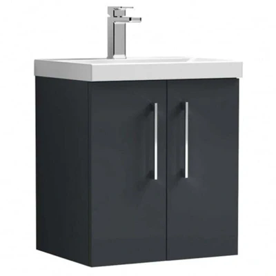 Arno Wall Hung 2 Door Vanity Unit with Basin 1 500mm Wide Satin Anthracite Nuie