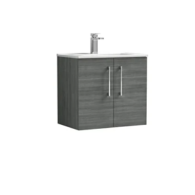 Arno Wall Hung 2 Door Vanity Unit with Basin 600mm Wide Anthracite Woodgrain Nuie