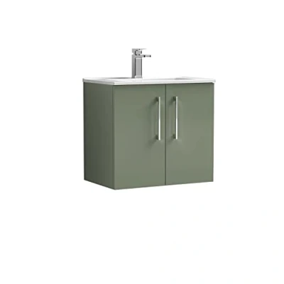 Arno Wall Hung 2 Door Vanity Unit with Basin 600mm Wide Satin Green Nuie