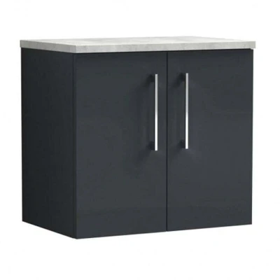 Arno Wall Hung 2 Door Vanity Unit with Bellato Grey Worktop 600mm Wide Satin Anthracite Nuie