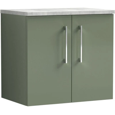 Arno Wall Hung 2 Door Vanity Unit with Bellato Grey Worktop 600mm Wide Satin Green Nuie