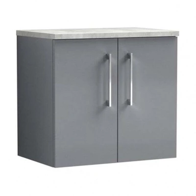 Arno Wall Hung 2 Door Vanity Unit with Bellato Grey Worktop 600mm Wide Satin Nuie