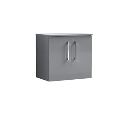 Arno Wall Hung 2 Door Vanity Unit with Worktop 600mm Wide Satin Grey Nuie