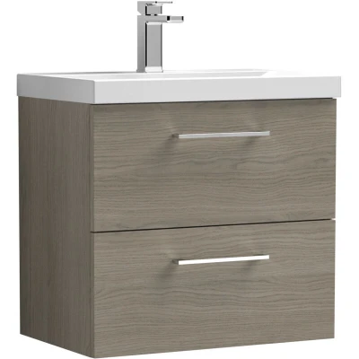 Arno Wall Hung 2 Drawer Vanity Unit with Basin 3 600mm Wide Solace Oak Woodgrain Nuie