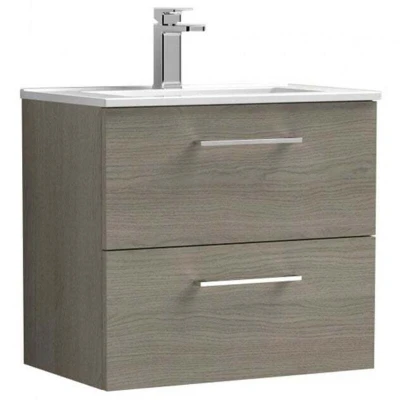 Arno Wall Hung 2 Drawer Vanity Unit with Basin 600mm Wide Solace Oak Woodgrain Nuie