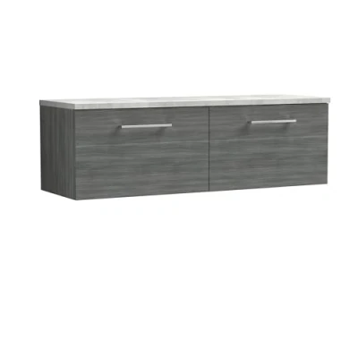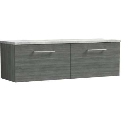 Arno Wall Hung 2 Drawer Vanity Unit with Bellato Grey Worktop 1200mm Wide Anthracite Woodgrain Nuie