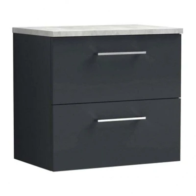 Arno Wall Hung 2 Drawer Vanity Unit with Bellato Grey Worktop 600mm Wide Satin Anthracite Nuie