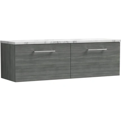 Arno Wall Hung 2 Drawer Vanity Unit with Carrera Marble Worktop 1200mm Wide Anthracite Woodgrain Nuie