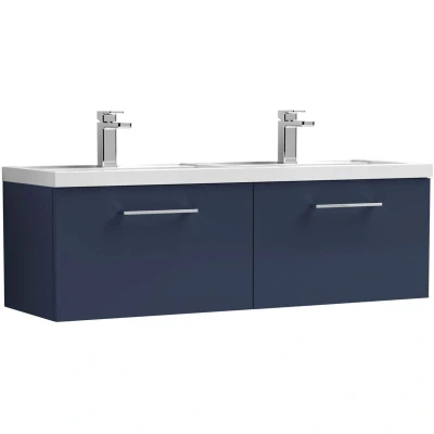 Arno Wall Hung 2 Drawer Vanity Unit with Double Polymarble Basin 1200mm Wide Midnight Blue Nuie
