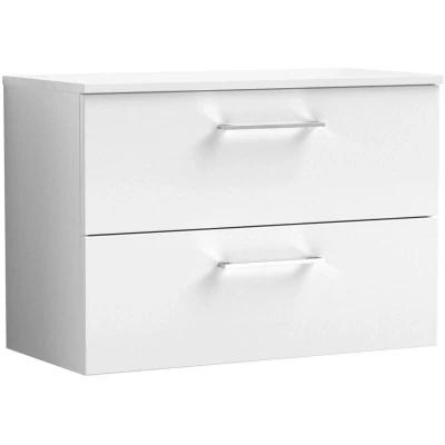 Arno Wall Hung 2 Drawer Vanity Unit with Worktop 800mm Wide Gloss White Nuie
