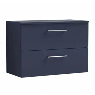 Arno Wall Hung 2 Drawer Vanity with Worktop 800mm Wide Midnight Blue Nuie