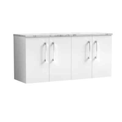 Arno Wall Hung 4 Door Vanity Unit with Carrera Marble Worktop 1200mm Wide Gloss White Nuie