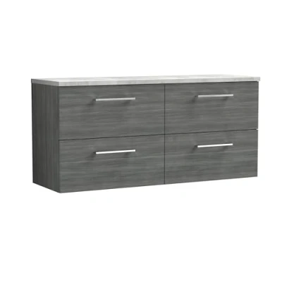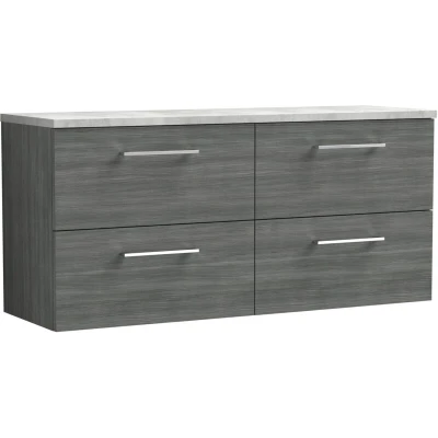 Arno Wall Hung 4 Drawer Vanity Unit with Bellato Grey Worktop 1200mm Wide Anthracite Woodgrain Nuie