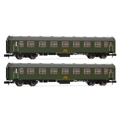 Arnold is a toy manufacturing company founded in Nuremberg on 4 October 1906 by Karl Arnold. Specialising in tin toys, it also produced boats and doll's houses until the Second World War, when the factory was completely destroyed. It is best known for launching the Arnold Rapido model train range in 1962 in the 1:160 scale with a track gauge of 9 mm: this was the birth of the N scale. From 1960 to 1962, production consisted of a range of small "Rapido 200" trains, in 1:200 scale, more toy train than model train. However, from 1962, the company turned to the production of real model trains and became the reference N production from 1970 onwards. In 1964, the N scale was recognised as the NEM standard and later the "Rapido coupler" was adopted as the European standard for the scale. In 1995 the firm was bought by Rivarossi and in 2004 by Hornby PLC. Rivarossi Coach and Coach Packs span a wide selection of eras and model railway themes, perfect for extending your rake. From sleeping coaches to restaurant coaches and more. 2x Passenger Coaches in 1:160 Scale N gauge: Minimum curve 192mm and comes in a olive green livery colour. Epoch VI: 2007 – Present has been a time of building upon all of the progress that has been made over the last century., Manufacturer: Hornby Hobbies Ltd