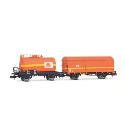 Arnold HN6679 Colas Rail, 2 unit pack axle tank wagon and G4 wagon, ep. V for adults collectors, Orange