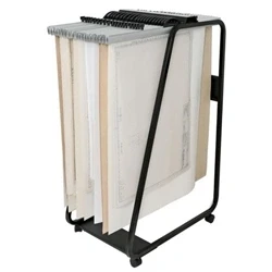 This trolley is perfect for a variety of applications, making it versatile for both professional and personal use. It is suitable for storing plans, maps, charts, posters, prints, and even sample swatches of various materials, including wallpaper, gift wrapping paper, curtains, and fabrics. Its ability to handle large flat sheets makes it an essential tool for architects, designers, and anyone who works with oversized documents.