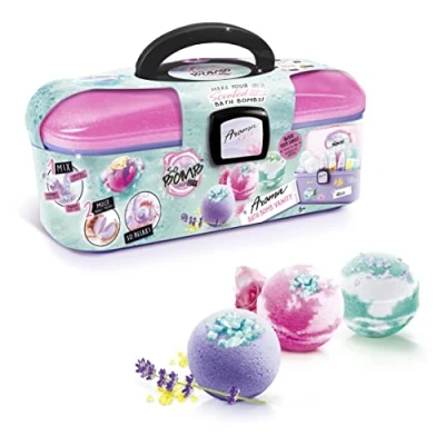 DIY BATH BOMB CREATION: Creative kit allowing children to make up to four scented bath bombs by mixing powders, fragrances and crystal salts, following the provided instructions in a structured manual activity AROMA GUIDE INCLUDED: Illustrated guide presenting different combinations of fragrances and crystals to vary the scent and appearance of the bath bombs created during the activity MOULDS AND INGREDIENTS INCLUDED: Contains reusable moulds, bath powders, decorative crystals and fragrance bottles needed to create the bath bomb preparations PORTABLE STORAGE VANITY CASE: Rigid vanity case used both for storing accessories and as a transport box, allowing the kit to be easily carried and kept organised CHILDREN CREATIVE ACTIVITY 6 YEARS+: Manual activity focused on making bath bombs, suitable for children aged 6 years and over within a guided creative framework, Manufacturer: Canal Toys