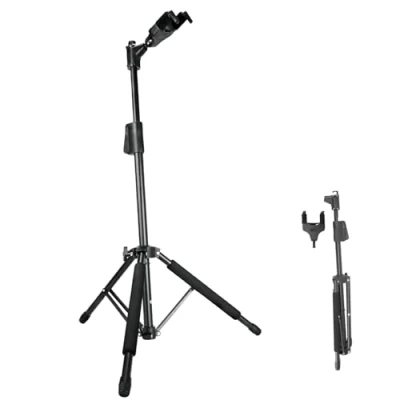 AROMA Universal Portable Guitar Stand with Auto lock Neck Holder Floor One button Adjustable Height In Soild Tripod