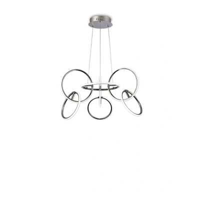 Aros Ceiling Pendant 89cm Diameter, 7 Ring, 81W LED 3000K, 3500lm, Chrome, RF Remote Control