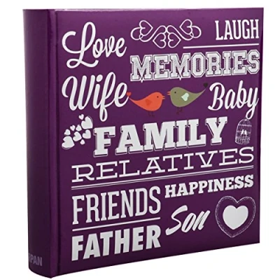 PREMIUM QUALITY ALBUM: ARPAN exclusive photo album is made of superb hard cardboard that is sturdy and durable to last for years to come. Your pictures and memories will be preserved in a very special Purple Family Slogan Art Slip in photo album organiser. Acid free pages with memo writing area. ALBUM SIZE: This photo album approximate size is 23 x 23 x 4.5 cm. It comes with 50/Sheets, 100/pages and each page is displaying two photos. Up to 200 capacities hold 4x6 inch / 10x15cm photos for Landscape. Slip in album contains clear plastic pockets that your photo will fit. This is the perfect option for those of us that may want to alternate where photos are placed or change them for another one at a later date to organise all picture perfect way. IDEAL GIFT: Great to be Christmas gift for family and friends, anniversary gift, valentine’s day gift, mothers' day gift, father's day gift, baby birthday gifts, thanksgiving day gifts, new year's gift, Halloween's gift, holiday gift, Easter gift, grandparents day's gift, secretaries day gift, happy hour, wedding guest book, photo storage, travel record, or adventure book. Business gift, advertising promotion, opening ceremony, awards ceremony and many other special occasions. EXTRA FEATURES: Album specially designed to create wonderfully memories for photo lovers, Memo Writing Area use If you’re planning to include comments, dates, names or even little stories with your photographs, Personal Information Page where personal information can be written like your name, phone number, email, address, Use the index pages to note key information relating to your memorable moments, providing a CD/DVD pocket at the back for video or sound which bring back further fond times. CREATE MEMORIES: Create long lasting memories and keep them safe so you can share them in the future with your loved ones, in this high-end quality travel record, or adventure, keepsake memory books brought to you by ARPAN! It’s not only super practical but beautiful Purple Family Slogan Art cover to make perfect gift on all occasions.
