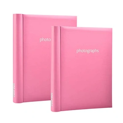 Arpan 2 Pack of Photo Albums Self Adhesive Large Picture Book Modern Style Wiro Binder in Black/Blue/Red/Vintage Birds/Butterfly (Hot Pink)