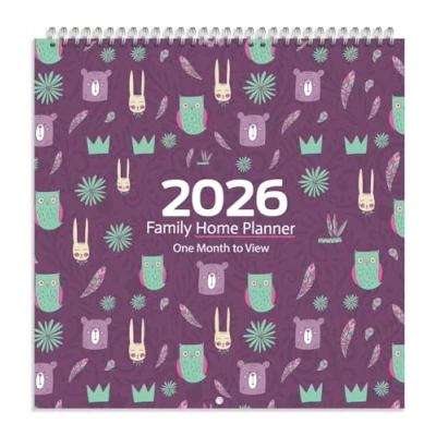 Arpan 2026 Family Home Planner Wall Calendar. Month to View Organiser with 5 Columns. Runs from 1st Jan' 31st Dec' 2026. Academic mid Year or School Planner, Owl Art