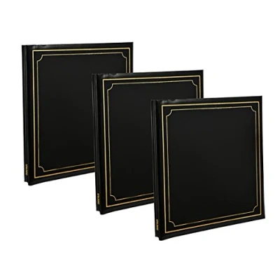 Arpan 3 x Extra Large 32x26cm Self Adhesive Photo Album Totaling 72/Sheets 144/Sides Leather Look Padded Cover Post Bound (Black)