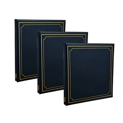 Arpan 3 x Extra Large 32x26cm Self Adhesive Photo Album Totaling 72/Sheets 144/Sides Leather Look Padded Cover Post bound (Blue)