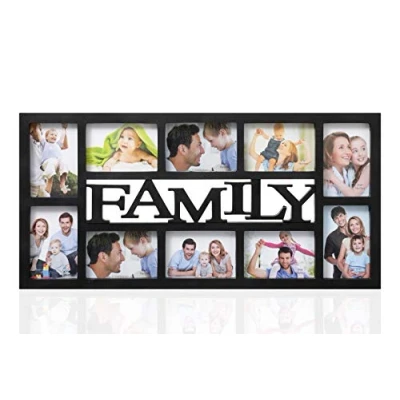 10, Multi Aperture Picture Frame With ''FAMILY'' Words- A simple yet stylish and modern photo frame Suitable for 10 images : 6 x 6''x4'' Landscape --- 4 x 6''x4'' Portrait Showcase your treasured memories in this lovely modern frame, this would also make for the perfect gift This frame comes ready to hang as portrait - wall mount only - Photo frame Size : 70 x 34 x 3 Cm Approx Made with high quality PLASTIC with front PS - Polystyrene sheet.