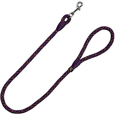 100% Polyester Cord; Carabiner Chrome Zamak; Sewn Inside; Finishes Plastic Purple; Length: 110 cm; diameter: 1.4 cm; Purple, Pink and Black with Black Inserts Ideal leash for walks with your pet; Durable and pleasant to the touch; Recommended for all breeds: Small, Medium and Large Made in Spain; High quality material strong and resistant to climatic changes; Machine washable Clip the carabineer to peg securely in the collar, harness or Petral and make sure to hold the handle; regularly check the status of the product before use for safety Polyester, Plastic, Metal
