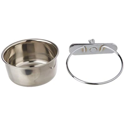 Stainless Steel Bird Cage Feeder With popcorn to hold it to the cage Size: 8 x 10.5 x 4 cm