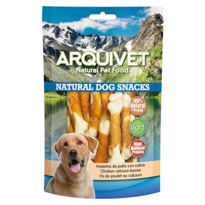 Snack in the form of huesito, with chicken meat enriched with calcium Food supplements for your dog, very rich in nutrients and vitamins Use as a gift or reward anytime or as part of a balanced diet The dog must be supervised at all times while feeding