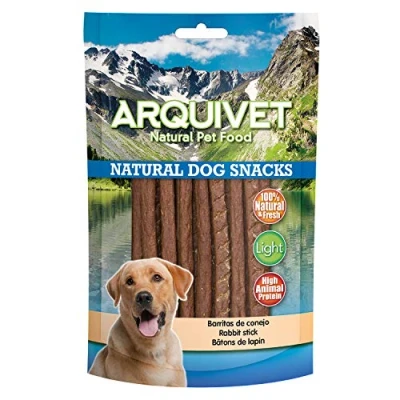 Delicious snack 100% natural in bar format with 100% natural rabbit meat. High in animal protein and low fat (Product Light) It is a complementary food for your dog, very rich in nutrients. Use as a gift or reward at any time, within a balanced diet. Quantity: 100g