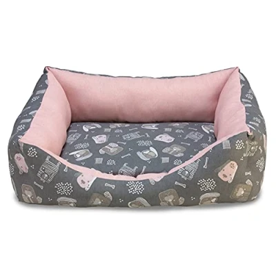 Arquivet Square Dog Bed in Pink and Grey 50 x 45 17 cm Padded Comfortable Washable Pet Beds