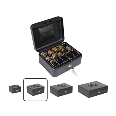 DURABLE AND TRANSPORTABLE: Made of steel, with enamel finish, shock resistant. With nickel-plated steel top handle for easy carrying With coin counting try: ideal for storing Euro coins, thanks to its removable top tray, with numeric markings that help to count the amount of stored KEY LOCK: Opening and closing by sawtooth key (most common), very easy to use. Supplied with set of two keys Width: 20 cm. External dimensions: 9 cm high, 20 cm wide and 16 cm deep International products have separate terms, are sold from abroad and may differ from local products, including fit, age ratings, and language of product, labeling or instructions.