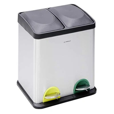 CONVENIENT AND EASY RECYCLING: It allows you to separate and sort waste thanks to its 2 inner buckets of 15 liters each. Ideal for garbage bags of 20 litres or more. 30 litres of total capacity. WITH REMOVABLE BINS: Each inner bin has a metal handle, which can be easily removed to remove the trash or to clean. SAFE AND HYGIENIC: Thanks to the pedals, each bin can be opened without using your hands. The pedals are colored to differentiate the waste that is deposited in each bucket. STAINLESS STEEL: With the whole stainless steel body, so it can be used both indoors and outdoors. The lids and buckets are made of polypropylene plastic so the entire bucket is durable and non-corrosive. Aesthetic: easily integrates into any decor or environment (suitable for kitchens, homes, terraces, offices, hospitals, etc.). Dimensions: H 48.5 x W 41 x D 34 cm., Weight: 11.3978989454 Pounds, Manufacturer: ARREGUI