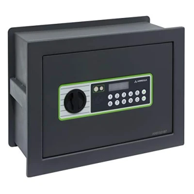 Wall safe with electronic combination opening and extendable bottom, 5 positions each 25 cm (15/17, 5/20/22, 5/25 cm) Made of steel with a front thickness of 6 mm and body thickness of 2 mm; closure with 2 cylindrical steel bolts with a diameter of 20 mm Two possible opening codes (one user code and one master code), 3 to 6 digits; locking system; unlocking and opening system with special emergency key, useful in case of forgetting the user code Measures 26x36x15 to 25 cm (height, width, depth). 8, 4 kg weight; dark grey color Package includes safe, two emergency keys and 4 batteries, Weight: 8.81849048 Pounds, Manufacturer: Arregui