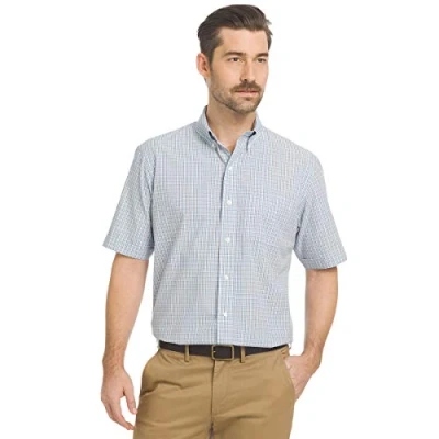 ARROW USA 1851 Men's Hamilton Poplins Short Sleeve Button Down Plaid Shirt, Blue Skyway, XL