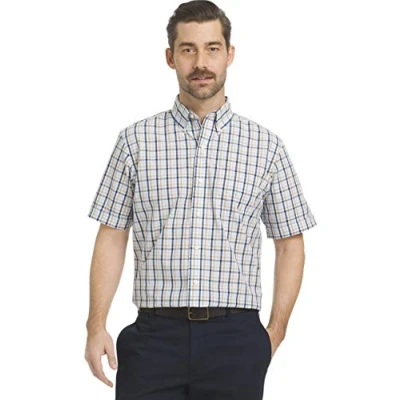 ARROW USA 1851 Men's Hamilton Poplins Short Sleeve Button Down Plaid Shirt, Rich Skyway, XL