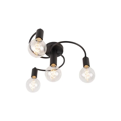 General description The QAZQA Art Deco Ceiling Light Black 4-Light - Facil is the perfect choice for lovers of minimalist and industrial designs. This stylish ceiling light adds undeniable charm to any room, enhancing your interior decor with its elegant matte black steel finish. Technical specifications Diameter: 45 cm Height: 13 cm Bulb holder: E27 Max wattage: 4 x 60 W Voltage: 230 V Connecting voltage: 220V/230V Protection class: IP20 Dimmable: Yes (dimmer not included) Lightsource: Exclusive Compatibility and accessories Requires four large E27 fitting G95 light sources (max. 60W), not included Compatible with incandescent, halogen, LED, and energy-saving bulbs Usage Suitable for indoor spaces such as dining rooms, hallways, kitchens, bedrooms, and living rooms Other information